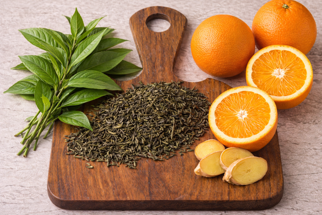 O Chá Verde com Laranja é uma combinação refrescante, revitalizante e energizante que une o poder antioxidante do chá