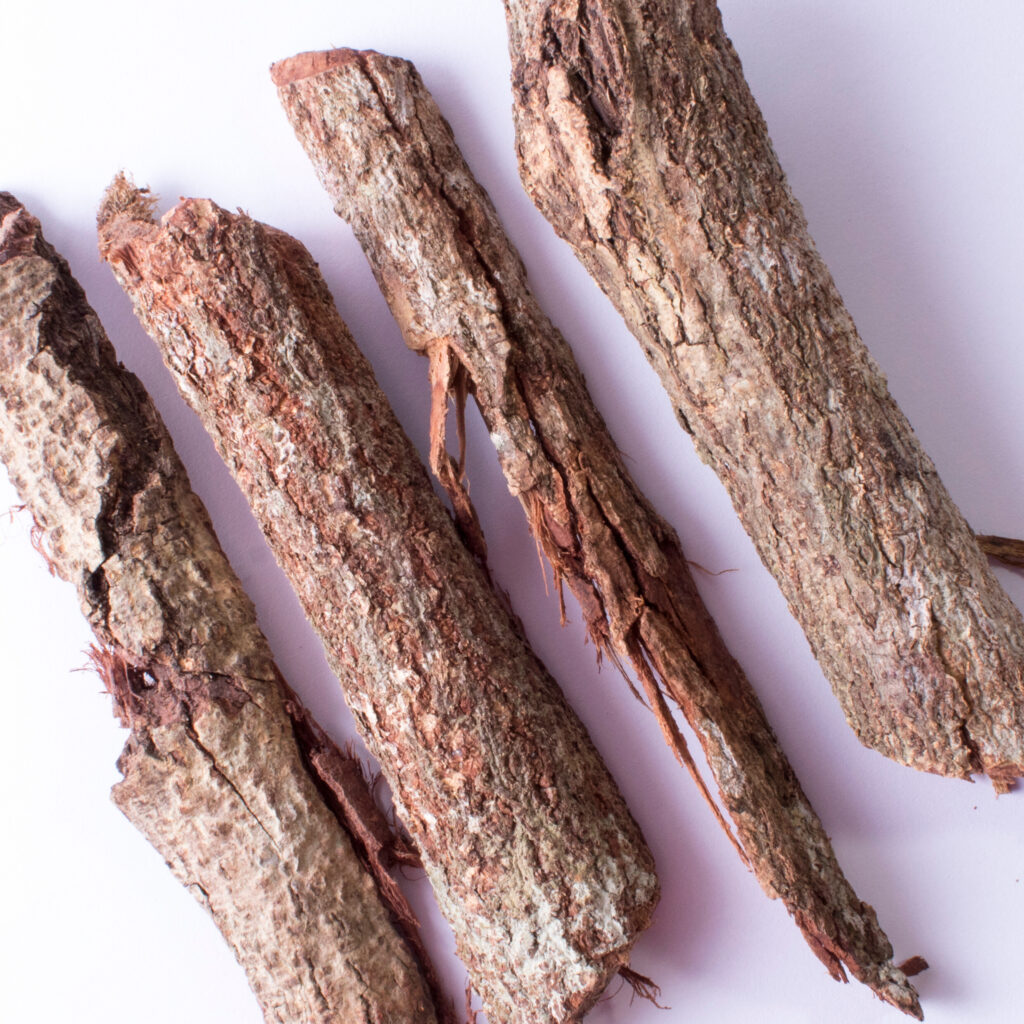 A casca do ipê-roxo possui propriedades medicinais amplamente reconhecidas, atuando como antimicrobiana, antifúngica, anti-inflamatória e analgésica, sendo eficaz no combate a infecções, dores e inflamações articulares.