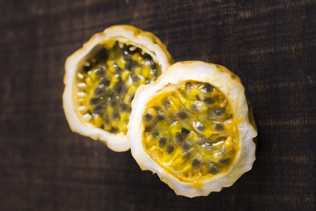 A farinha de maracujá, obtida da casca desidratada e moída da fruta, é rica em fibras solúveis (pectina) e apresenta propriedades hipoglicêmicas, hipolipemiantes, digestivas e de saciedade, sendo usada para auxiliar no controle da glicemia, colesterol e no emagrecimento.