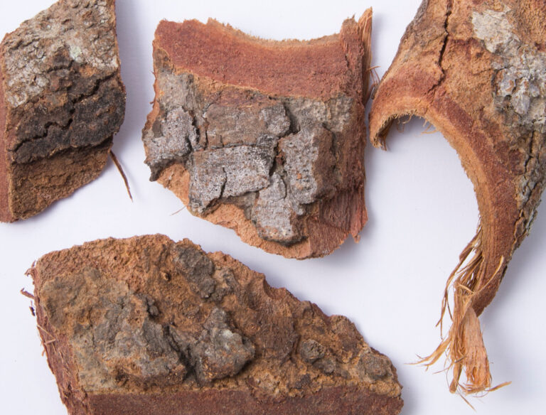 O lenho de quássia é amplamente reconhecido na literatura fitoterápica por seu intenso sabor amargo e elevada concentração de quassinoides, especialmente a quassina e a neoquassina.